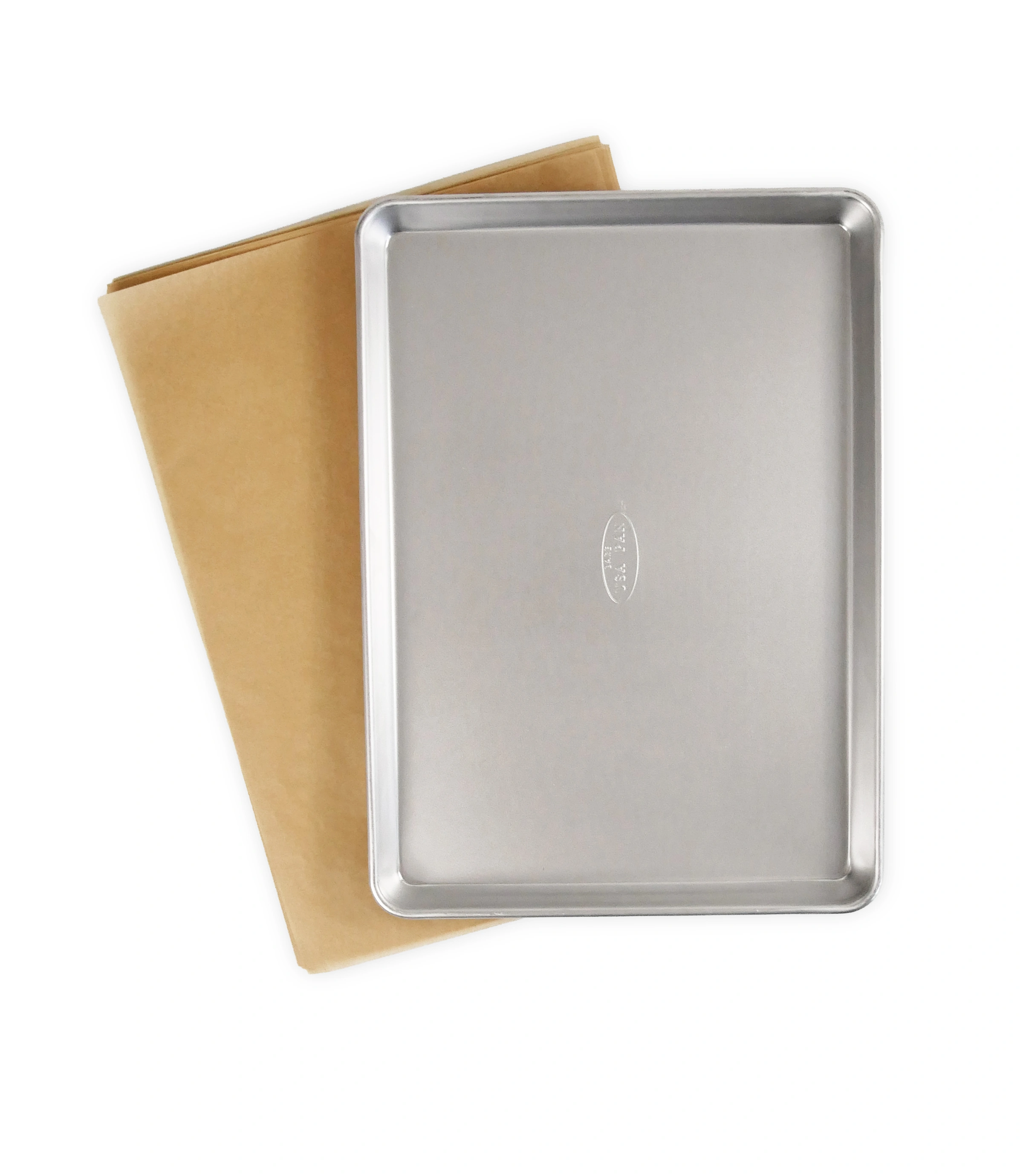 - This bundle features a bare half sheet pan with natural, unbleached parchment paper for effortless release and easier cleanup; made for bakers who prefer uncoated bakeware
